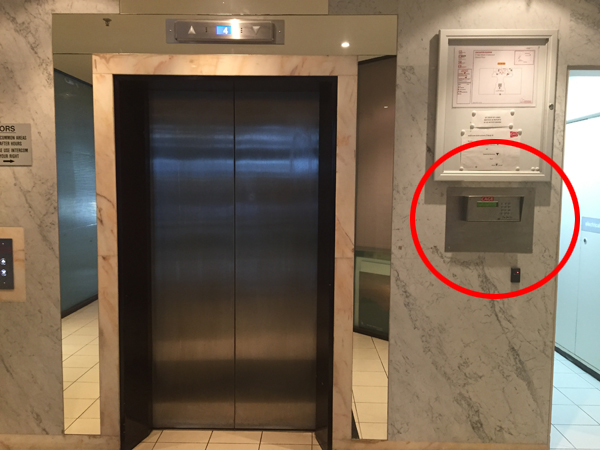 - To the right of the lifts on the Ground floor is a CAGE security keypad.